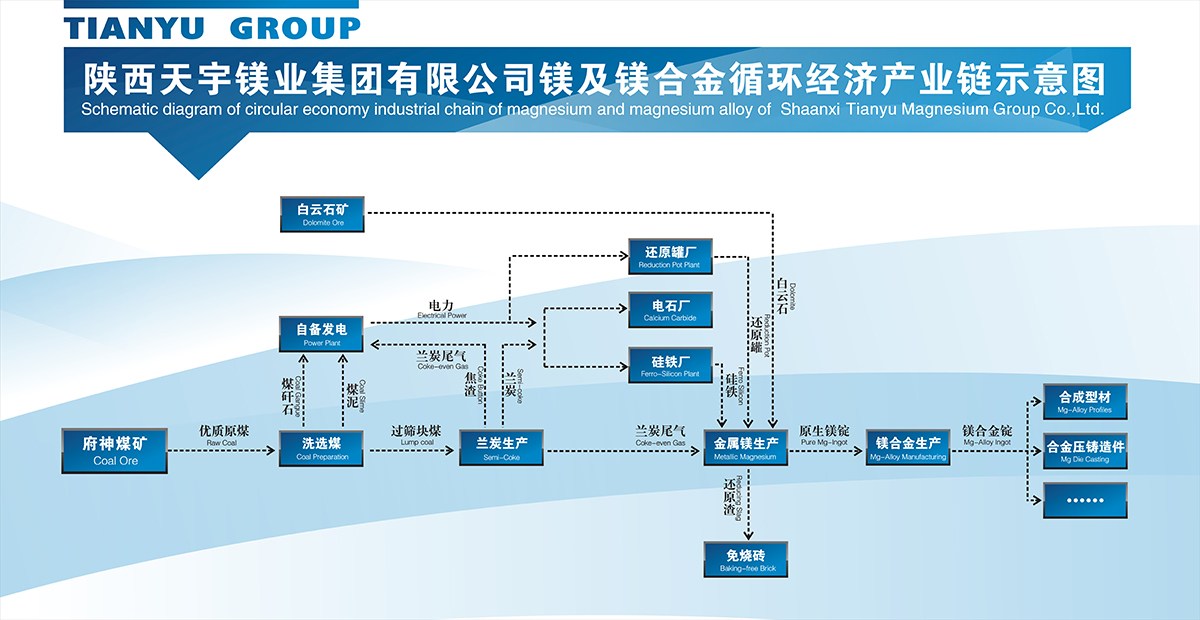 天宇集團(tuán)獨(dú)資創(chuàng)建的鎂及鎂合金循環(huán)經(jīng)濟(jì)產(chǎn)業(yè)基地已建、在建項(xiàng)目的生產(chǎn)能力:年產(chǎn)200萬(wàn)噸洗選煤、年產(chǎn)蘭炭120萬(wàn)噸、年產(chǎn)煤焦油12萬(wàn)噸、年產(chǎn)沫煤120萬(wàn)噸、年產(chǎn)鎂錠50000噸、年產(chǎn)鎂合金錠10000噸、年產(chǎn)鎂合金型材5000噸、年產(chǎn)鎂合金壓鑄件5000噸、年產(chǎn)鎂渣免燒磚3億塊、年產(chǎn)硅鐵6萬(wàn)噸、年產(chǎn)電石20萬(wàn)噸以及2×50KW自備發(fā)電項(xiàng)目,以上項(xiàng)目全部建成投產(chǎn)后在冊(cè)員工超過(guò)2000人,形成固定資產(chǎn)近15億元,預(yù)計(jì)年產(chǎn)值將達(dá)到40億元。企業(yè)自營(yíng)鎂錠出口業(yè)務(wù)每年創(chuàng)匯近2000萬(wàn)美元。  更多信息>